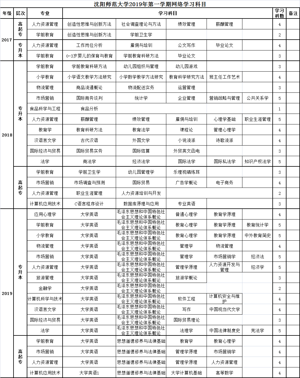 2017級(jí)學(xué)前教育、人力資源專業(yè)高起專和專升本學(xué)生;