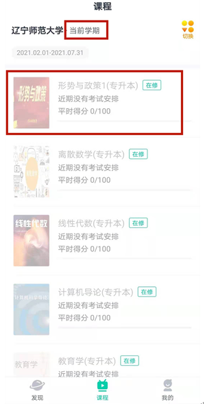 3、開始學習當前學期,下面是本學期所有學習的課程,點擊進入課程。