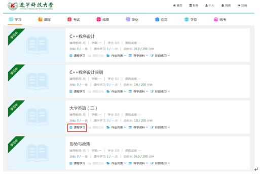 1、登錄后,進入主頁面,找到學習,然后選擇課程學習。